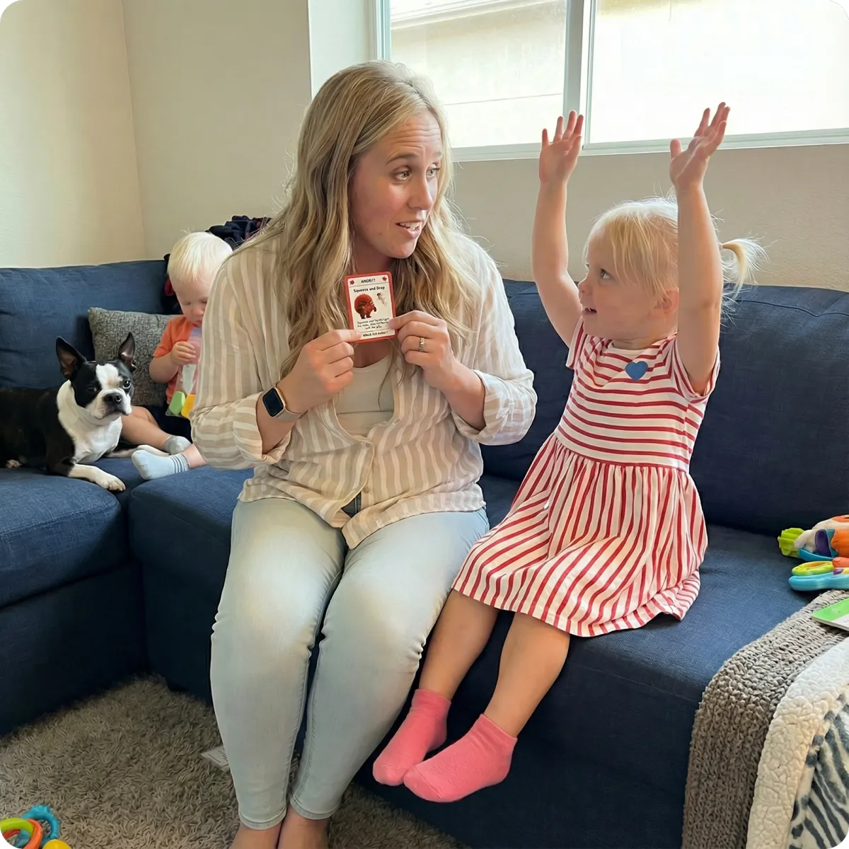 “What I love most is how practical it feels in real life. The prompts are short, supportive, and easy for kids to follow without turning the moment into something bigger. It helps bring everyone back to calm much faster, with less stress and far more confidence every day.”