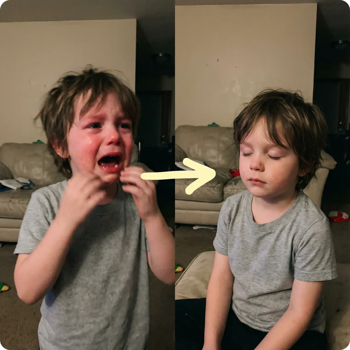 Instead of “Stop crying” or “Calm down,” your child learns to say: