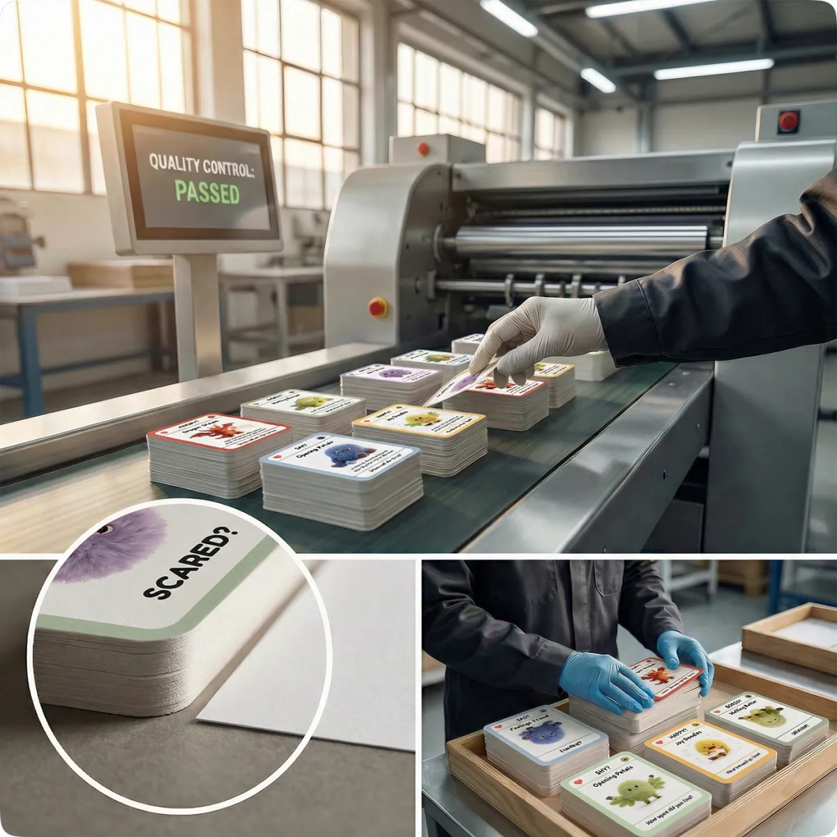 Each card is printed on thick, sturdy stock with a smooth matte finish that feels calm in your hands. Rounded edges make them safe for little fingers and everyday use.